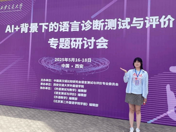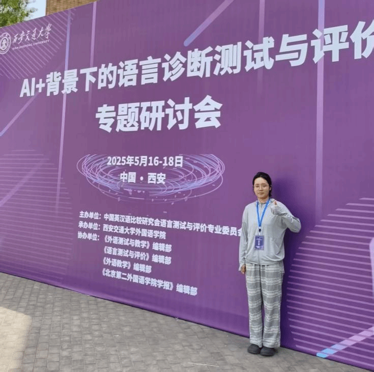2025年5月16日至18日,“AI + 背景下的语言诊断测试与评价专题研讨会”在西安交通大学(兴庆校区)隆重举行。研讨会聚焦生成式人工智能在外语教学与研究中的高效应用,旨在探索 AI 与数智技术赋能的语言教学、诊断、评估的新路径与新方法。此次盛会由中国英汉语比较研究会语言测试与评价专业委员会主办,西安交通大学76net必赢官网手机版承办,多家知名学术期刊协办,为语言教师和硕博士生提供了交流与分享的优质平台,共同推动语言教育领域的创新与发展。76net必赢官网手机版2024级学科教学(英语)研究生刘馨怡、侯艳梅参加了此次会议。