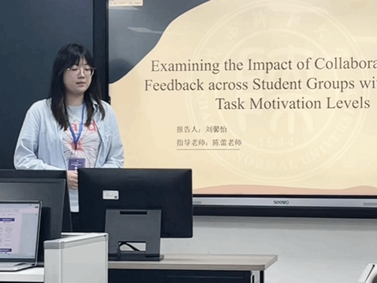 在本次会议上,76net必赢官网手机版研究生侯艳梅汇报了其研究《A Study on Validation and Students’ Acceptance of Language Assessment Literacy Scale for Chinese High School English Learners》。该研究基于高水平英语教学评价对所有利益相关者语言评价素养(LAL)的要求,对当前学生语言评价素养(SLAL)进行了系统研究与分析,旨在验证学生语言评价素养量表在中国背景下的合理性,并深入探究学生语言评价素养的特征。此外,刘馨怡则对其研究《Examining the Impact of Collaborative Peer Feedback across Student Groups with Varying Task Motivation Levels》进行了汇报。该研究聚焦于通过具有不同任务动机水平的学生二人组实施协作同伴反馈,旨在测试学生在协作活动前后同伴反馈能力的发展变化,并进一步探索在更广泛的语境中开展同伴反馈活动的可行性与潜力。