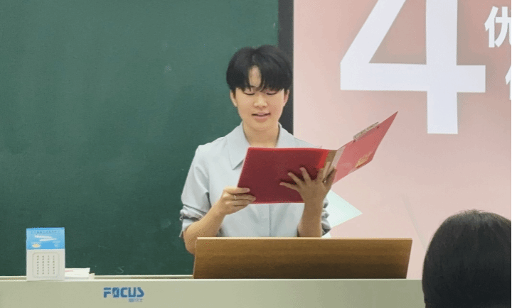 王鹤凝同学是在本次比赛中荣获二等奖,她作为23级参赛选手代表进行了发言。她表示:初遇赛讯时,她曾困于教学法认知空白与完美主义焦虑,是导师“成长无需等准备好”的点拨让她勇敢报名。备赛中,她从依赖语音优势到钻研教学内核,在推翻课件、打磨教态的试错中积累经验,虽获二等奖却更珍视过程收获。