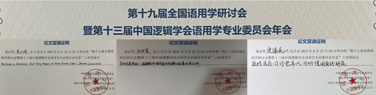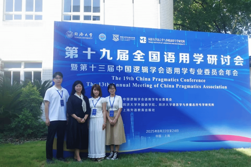 2025年8月22—24日,第十九届全国语用学研讨会暨第十三届中国逻辑学会语用学专业委员会年会于同济大学成功召开。大会以“面向社会变化的语用学创新研究”为主题,汇聚语用学及相关交叉学科400余位专家学者。76net必赢官网手机版朱冬怡副教授带领2024级硕士生崔云晗、张世瑾、宋泽辰一行四人赴沪参会,共襄学术盛举。