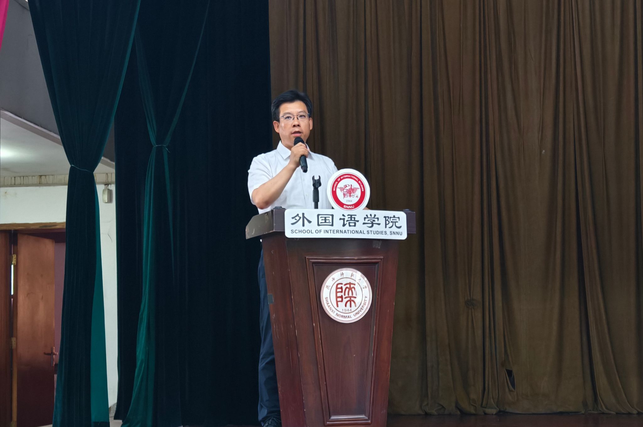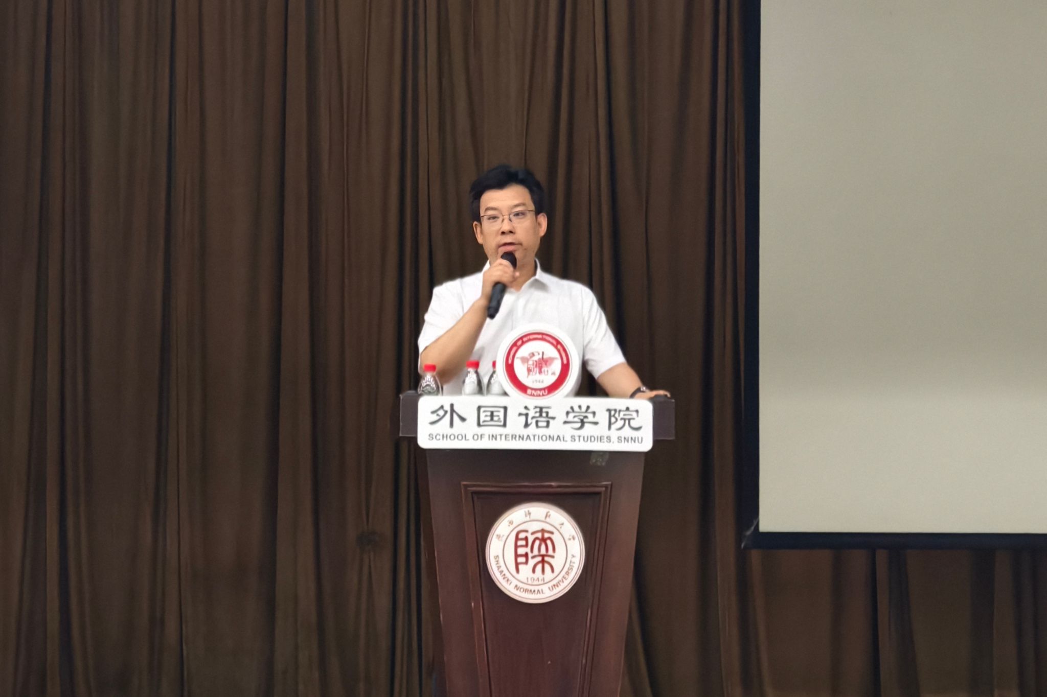 随后,76net必赢官网手机版院长刘全国教授为2025级全体新生作首场入学教育报告。他以“时代”、“国家”、“城市”、“学校”、“学院”、“学生”为关键词,从时代脉搏到家国情怀,从城市变迁到学校发展,从学院壮大到学生成长,为新生们呈现了别开生面的一课,勉励各位同学力争成为“博雅人”、“多语人”、“国际人”、“教育人”、“研究人”五位一体的外语全人。