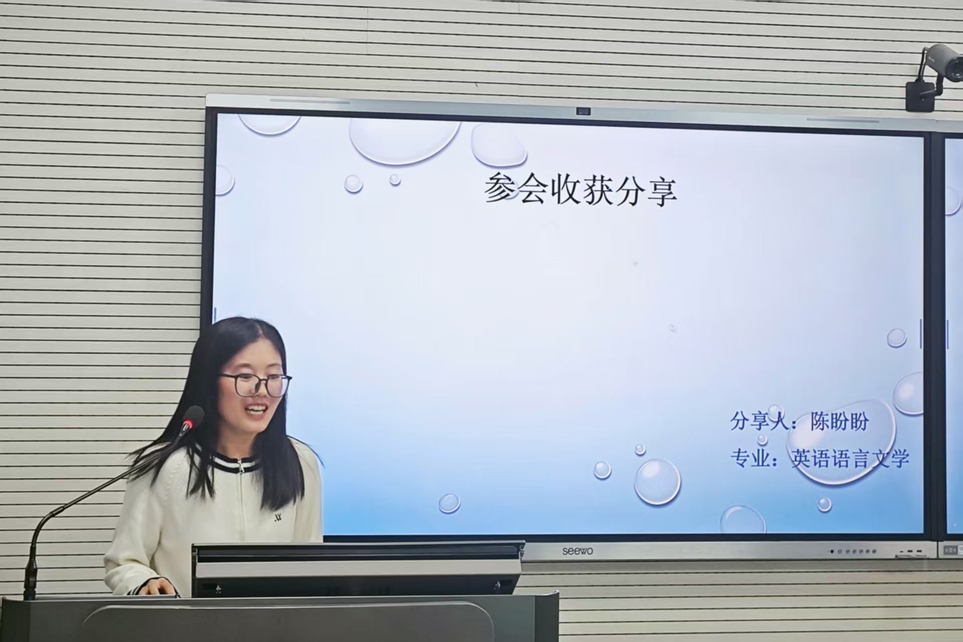 陈盼盼以“参会经验分享”为题,从参会原因、参会流程、投稿剖析、录用攻略和论文常见问题五个方面分享个人参会经验。她通过直观的实例展示,向在场同学形象地描绘了一路走来的心路历程和喜怒哀乐,这也诠释了外院人“永不言弃”的拼搏精神和“敢想敢拼”的求索精神。在逐项讲解论文撰写及参会、投稿流程的要点之余,她也鼓励在场学子充分利用学院所提供的学习资源与科研平台,大胆参会、勇于发刊。