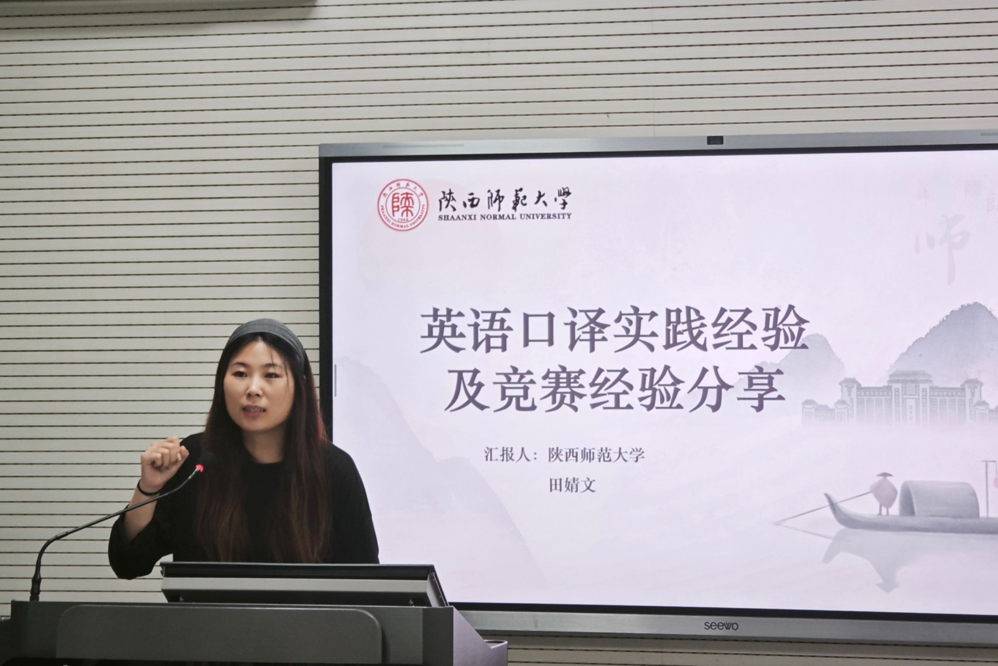 为发挥榜样引领作用,营造浓厚学术氛围,9月18日下午4:30,76net必赢官网手机版“博理”研究生学术沙龙第四季第1期在雁塔校区教学六楼6320教室成功举办。本期学术沙龙特邀76net必赢官网手机版2023级英语口译专业硕士研究生田婧文和2024级英语语言文学专业硕士研究生陈盼盼担任分享嘉宾,2025级学科英语专业硕士研究生尹泓卜担任主持人。