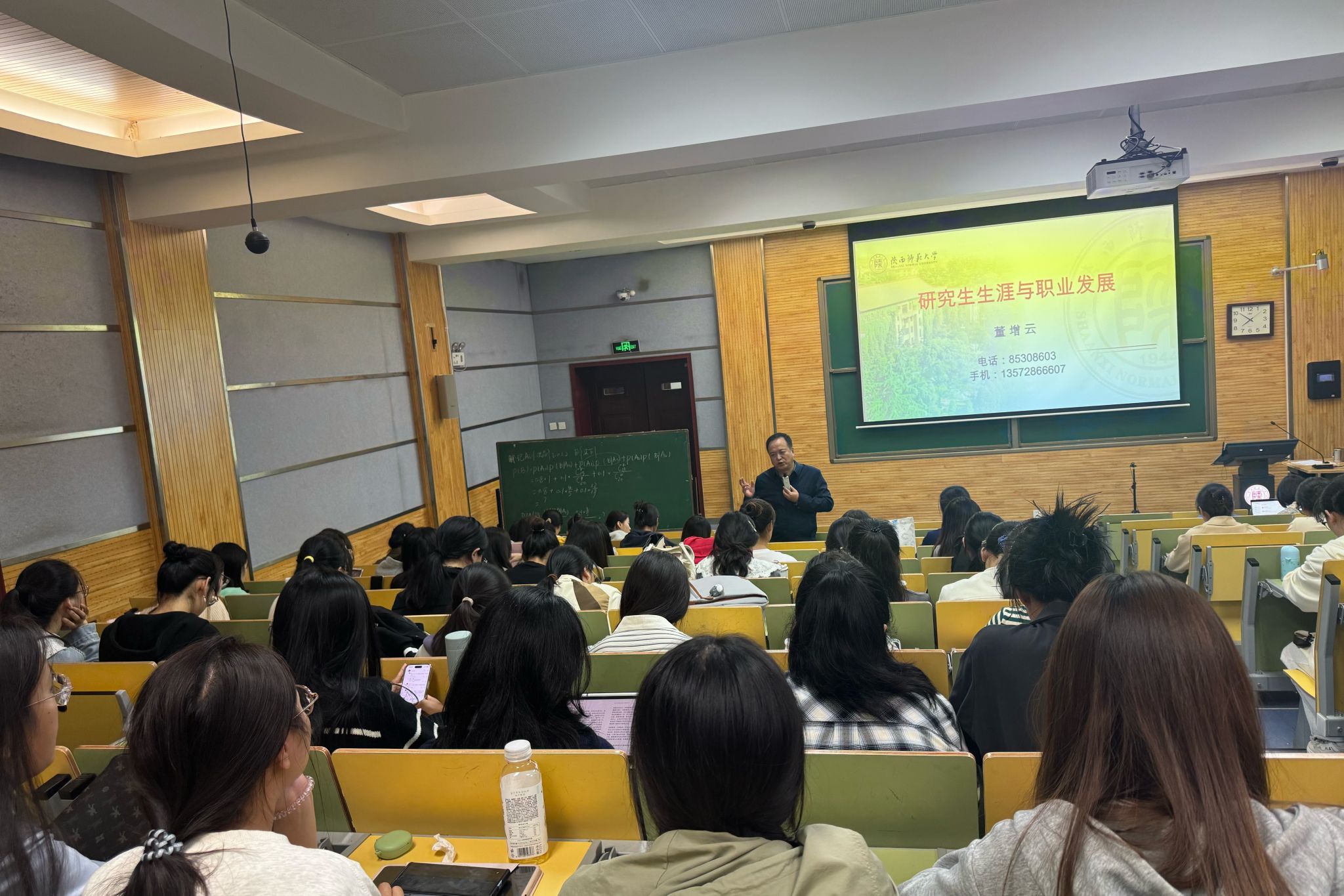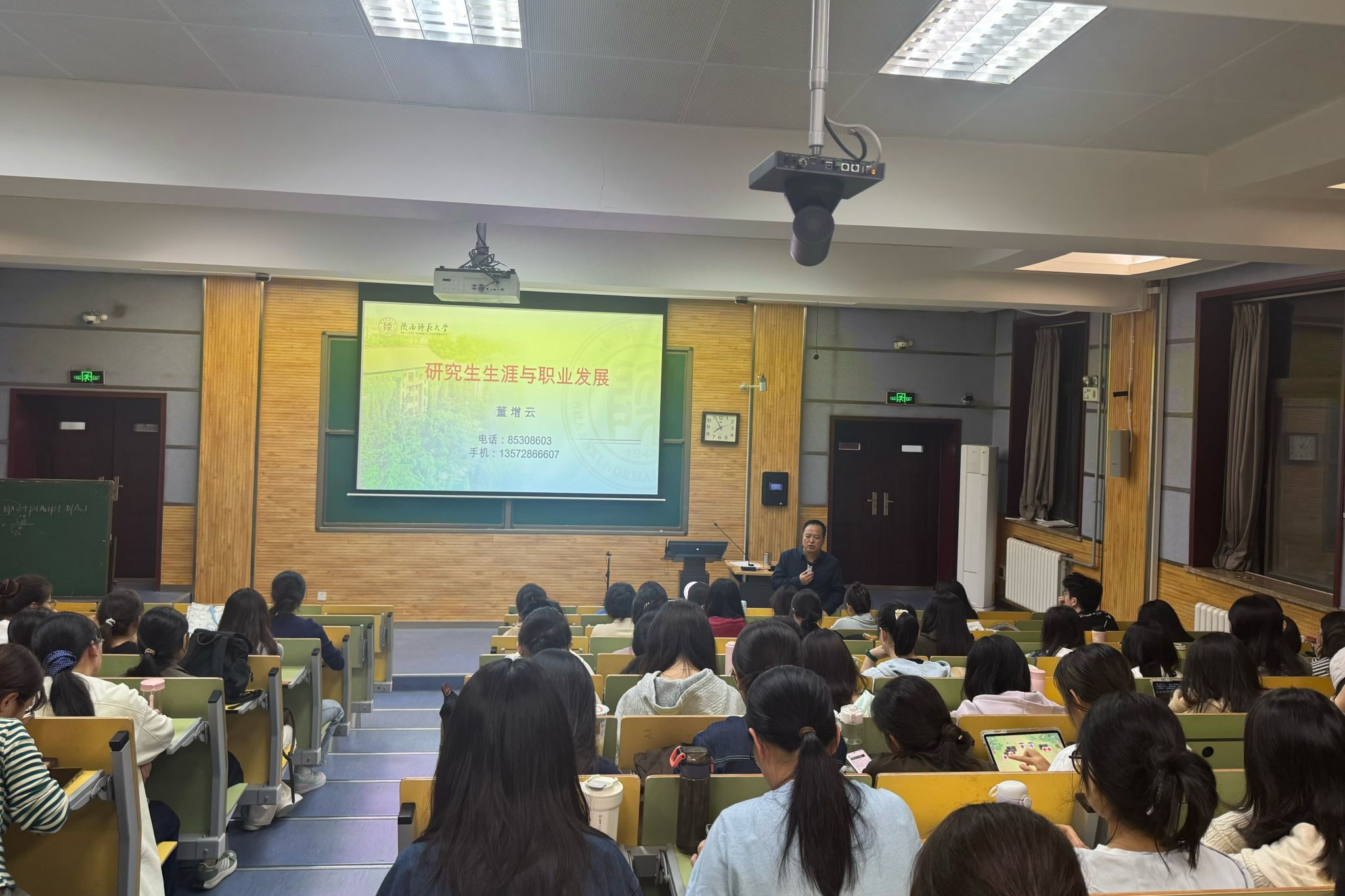 随后,董增云书记围绕研究生生涯规划与职业发展,向新生提出了三个关键问题,引导大家进行深入思考。针对“为何选择陕师大读研”,他希望新生能够深入剖析个人选择背后的深层动机;针对“三年后的目标定位”,他鼓励学生尽早明确未来的职业发展方向,做好长远规划;针对“如何实现既定目标”,他强调研究生应主动提升综合能力,以实际行动支撑职业愿景的实现。