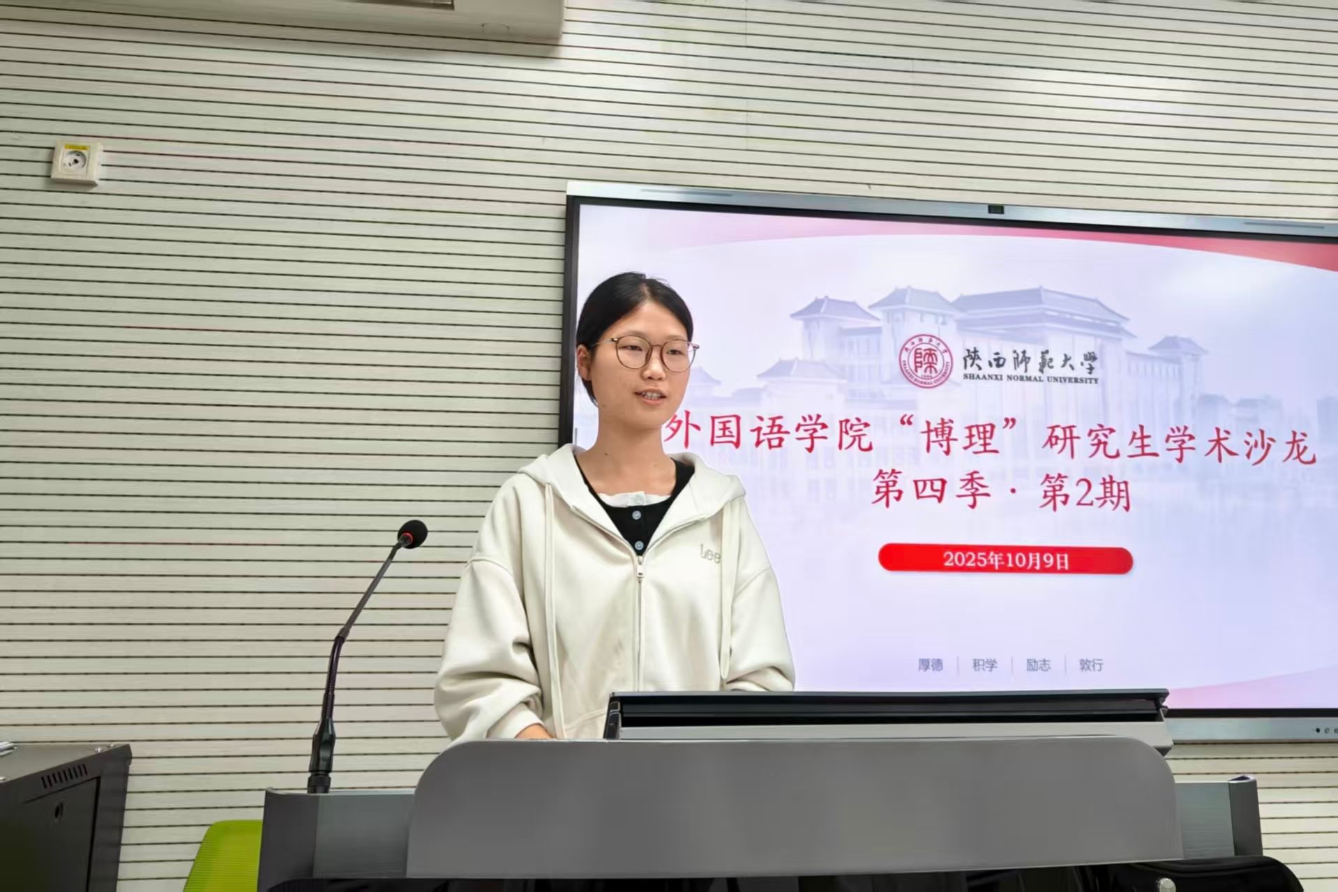 为深化研究生学术素养,拓展国际化学术视野,10月9日16:30,76net必赢官网手机版“博理”研究生学术沙龙第四季第2期在雁塔校区教学六楼6320教室成功举办。本期学术沙龙特邀76net必赢官网手机版2023级英语语言文学专业硕士研究生许怀民担任分享嘉宾,研究生辅导员董洁参加本次沙龙,活动由2025级英语语言文学专业硕士研究生马凯妍主持。