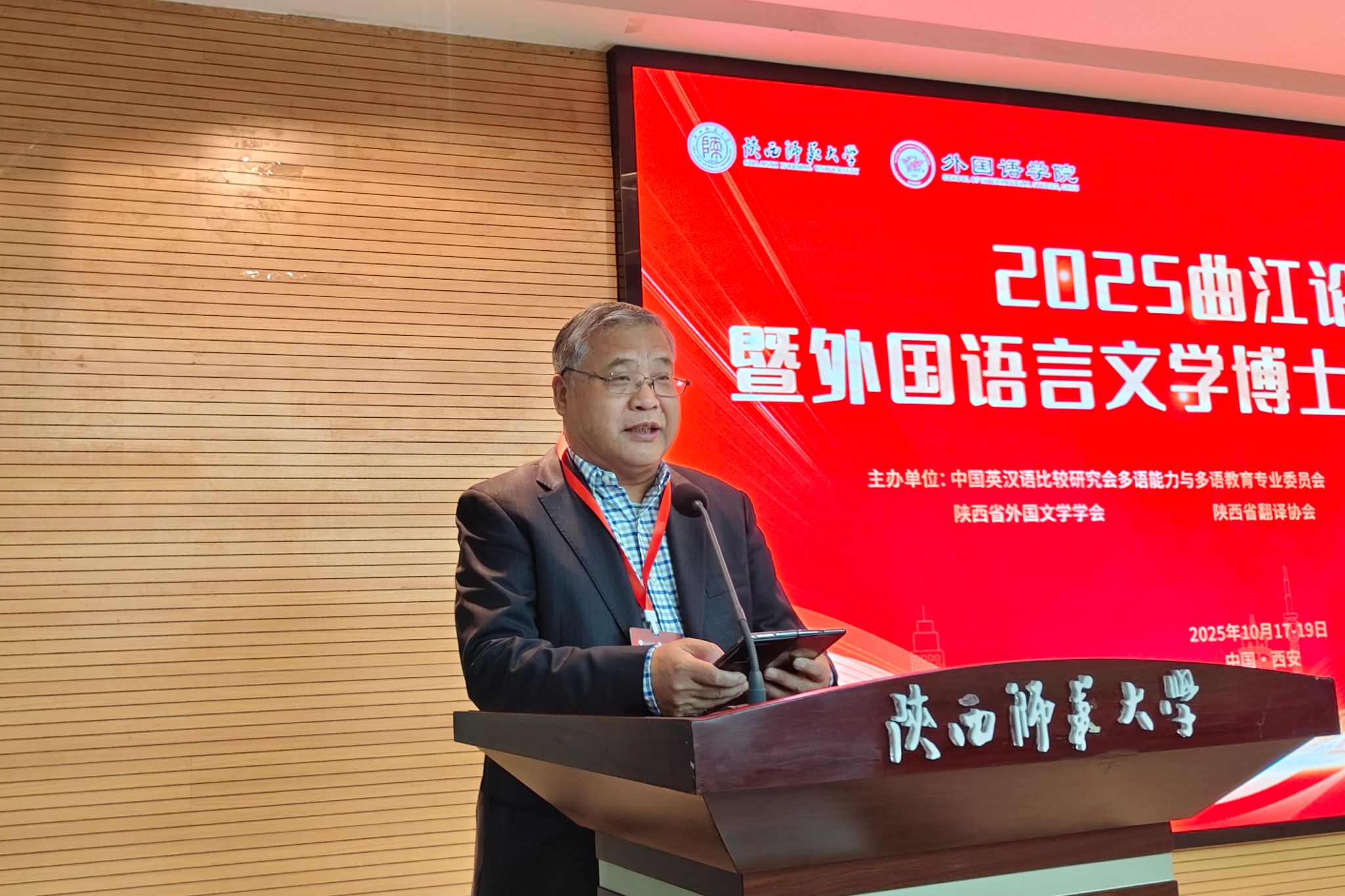 2025年10月17-19日,由中国英汉语比较研究会多语言能力与多语教育专业委员会、陕西省外国文学学会、陕西省翻译协会、陕西省高等学校大学外语教学研究会、76net必赢官网手机版联合主办的“曲江论坛暨外国语言文学博士研究生论坛”在76net必赢官网手机版雁塔校区成功举办。我校副校长王云博出席会议。