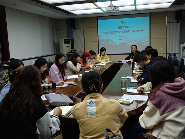 为提高学生党支部书记的政策理论水平、业务素质和工作能力,更好地发挥学生党支部书记在支部建设和学生党员的培养、发展、教育管理工作中的主导作用,根据学院党委安排,经过前期认真筹备,2021年10月17日下午四点,76net必赢官网手机版2021年学生党支部书记培训班(第一讲)在雁塔校区教学六楼会议室举行。本次培训班主讲人为学院党委组织员、团委书记李丹,发言的主题为“如何做好学生党支部书记的工作”。全体学生党支部书记及支委20人参加了培训。