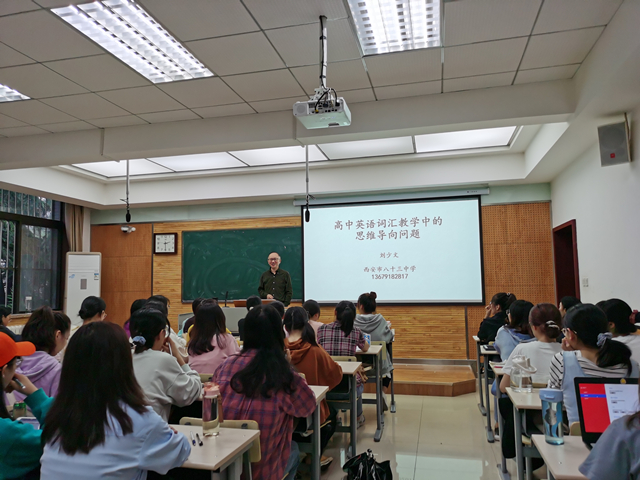 首先,刘老师向全体同学介绍本节讲座的主要内容:词汇课例、构词意识和熟词生义三大方面的教学内容,并为大家解释以思维导向进行词汇教学的有效性、生动性和重要性。