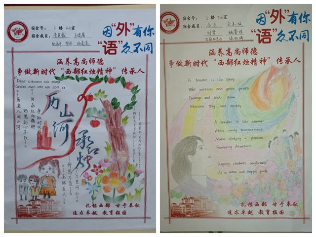 进一步加强专业走廊建设,学院设计“涵养高尚师德”主题门贴,将师德涵养教育活动融入宿舍公寓日常管理。学院广大学生用自己的画笔,亲手表达对教师的崇高敬意,立志投身教育事业、弘扬高尚师德。
