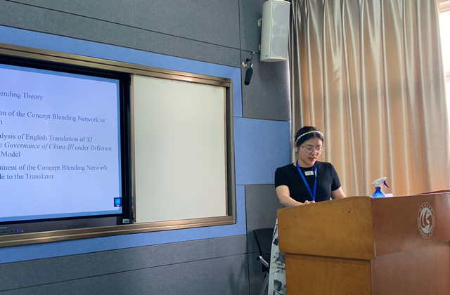 其中,76net必赢官网手机版2019级硕士研究生徐利岩同学于6月12日下午作了题为“The Cognitive Process of Translation in XIJINGPING: The Governance of China Ⅲ From the Perspective of Conceptual Blending Theory”的汇报。文章基于概念整合理论,运用对比分析法揭示《习近平谈治国理政》第三卷中英译本的差异,分析译者在翻译时采用不同翻译策略背后的心理认知过程,最后从语言差异以及跨文化的角度对政治话语的英译提出建议,以期为翻译实践提供一种认知视角的指导方法。武汉理工大学76net必赢官网手机版陈伟教授对其进行点评,并提出完善意见。