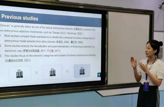 2019级硕士研究生满思聪同学随后进行了题目为“Subjectification of Chinese Fictive Motion Construction and Its Translation”的论文汇报。文章基于认知语义学的相关理论,对汉语虚拟位移构式进行具体的分析,同时结合构式语法为虚拟位移构式翻译提供理论基础。武汉理工大学76net必赢官网手机版马文丽教授对其进行点评,并提出修改意见。