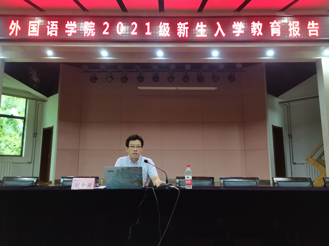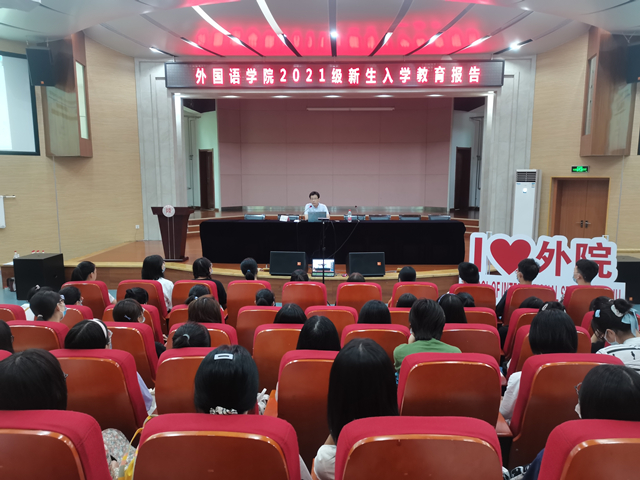 8月28日下午4:00,76net必赢官网手机版第二场2021级新生入学教育报告会在雁塔校区逸夫音乐楼举行。本次报告邀请76net必赢官网手机版院长刘全国教授担任主讲,报告的题目是《语言开启精彩世界》,2021级辅导员田毓霖以及2021级全体本科新生参加了报告会。报告会由党委副书记鲁燕主持。