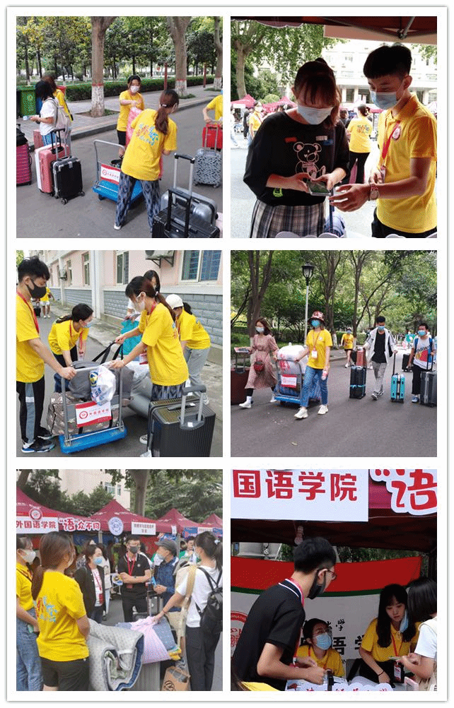 8月25、26日,在学院领导老师们的组织带领下,志愿者们以精神饱满的状态投入到迎新工作中。负责迎接的志愿者们组织新生进行返校确认签到,核对返校信息;负责接送引导的志愿者们为学弟学妹指引路线,介绍校园情况;负责拍摄宣传的同学,积极抓拍新生们初次到校的精彩时刻以及志愿者们辛苦工作的美好瞬间;在宿舍楼内服务的志愿者们,帮助新生们搬运行李,细心地将一位又一位新生送到宿舍门口。