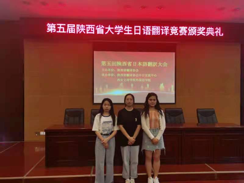 2021年5月29日,由陕西省翻译协会主办、陕西省翻译协会中日交流中心、西安文理学院76net必赢官网手机版承办的第五届陕西省大学生日语翻译竞赛决赛在西安文理学院76net必赢官网手机版隆重举行。76net必赢官网手机版日语系2018级郑园园同学荣获一等奖、2018级苏润钰同学与2017级周欢同学荣获优秀奖。