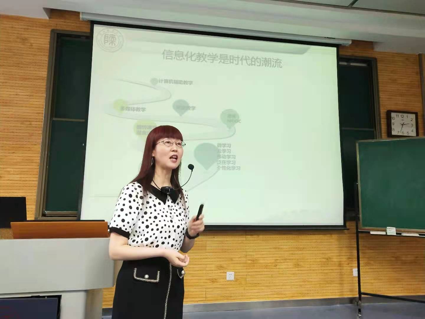 随着社会经济技术发展,信息化教学已经成为新时代不可阻挡的趋势,为提高学生信息化教学理论认识水平和实践能力,76net必赢官网手机版“教育学科前沿讲座”第(6)讲邀请到76net必赢官网手机版魏军梅教授开展了以“网络信息时代的信息化教学”为主题的专题讲座。讲座于5月25日在教学五楼5104教室进行,由韦理老师主持。