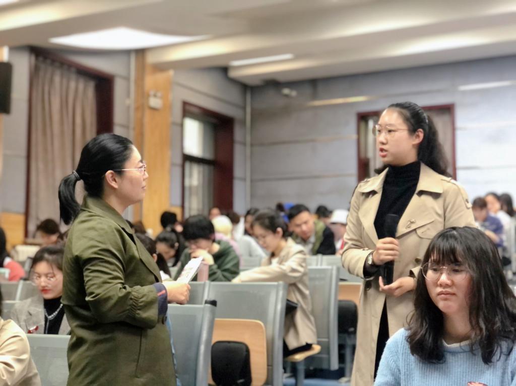 随后,崔老师重点讲解了有效教师和有效教学的特点。实现有效教学,第一,教师应该首先从人性角度出发,关心尊重学生。第二,有效教学离不开秩序化的班级组织与管理,教师应该运用班级管理策略,对不同学生行为进行不同反馈。第三,指令的计划、组织和施行也尤为重要,运用一些提问技巧使学生参与到教学中来,可以达到事半功倍的效果。第四,教师切不可忘记通过作业反馈等形式来检测学生学习成果及挖掘学生学习潜力。同时,崔老师从我国教育改革出发,以核心素养为切入点,引导学生立志成为“四有好老师”,并强调全员育人,全程育人,全方位育人的重要性。