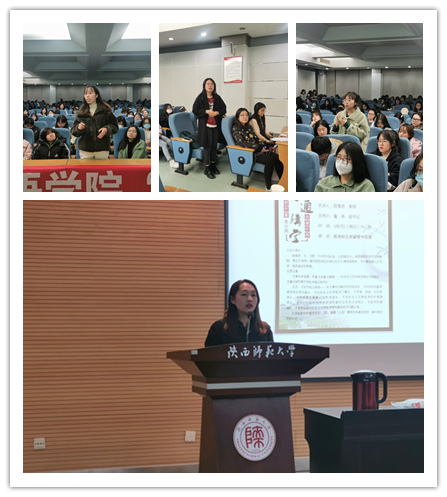 2021年3月7日晚7点,76net必赢官网手机版“会通讲堂”系列讲座第22期《女性:未来的职场与人生》在雁塔校区崇鋈楼学思堂顺利召开。本次讲座特邀文学院教授、博士生导师屈雅君教授主讲,会议由76net必赢官网手机版党委副书记鲁燕老师主持,2017级辅导员李丹,2019级辅导员屈婉婷以及学院低年级学生近300人共同聆听了讲座。