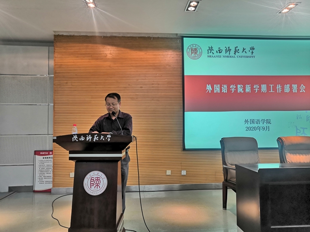 刘全国围绕本科生、研究生教学工作,强调教师应持续提高课堂质量和树立学科意识,鼓励老师关注教学成果产出,着力提高学生培养质量;孙坚通报了疫情期间老师们维护教学秩序的情况,对新学期外语活动月等工作进行了部署;鲁燕介绍了2020届毕业生就业情况,对疫情防控及学生学风建设工作进行了安排。