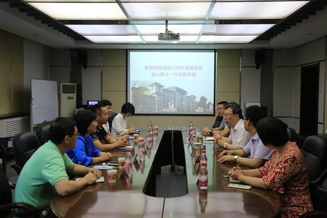 7月30日上午,海南大学76net必赢官网手机版院长金山、俄语系主任吕卉、日语系主任李明玲、商务英语系副主任刘汉军、英语系副主任张瑛一行来76net必赢官网手机版交流。76net必赢官网手机版院长王启龙、副院长刘全国、副院长曹婷及俄语系主任、英语系副主任丁明礼在学院会议室与到访客人进行了座谈。座谈会由王启龙院长主持。