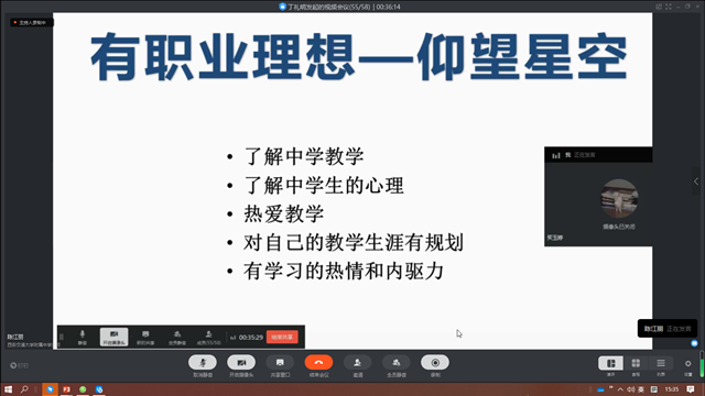 研讨会期间,王兰英做了题为“厚积方能薄发,游刃才可有余”专题讲座,在夯实语言功底、提高文化修养、锤炼教学技能、熟练使用现代教育技术等方面对职前教师提出了具体的要求和建议。陈江丽寄语76net必赢官网手机版学子“仰望星空,脚踏实地”,并从教学管理能力、学习反思能力、教育科研能力、团队合作能力等方面提出具体问题和方案。唐丽娟从增加课堂实践、提高教研能力、营造良好工作环境等方面对76net必赢官网手机版学子提出了具体的要求。