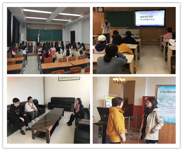 法语班班主任王燕红老师深入学生中谈心谈话,针对76net必赢官网手机版首次开设法语专业,学生在专业课学习方法以及学业规划方面存在迷茫的问题,邀请了法国高等教育署驻西安办事处代表老师为法语班学生召开法国留学知识讲座,并组织班级召开学习经验交流分享会;外文一班班主任巢玥老师针对新生入校后的适应性问题,号召全班同学坚持用一个月时间养成一个有利于个人学习生活的好习惯,同时还组织英文诗歌读书朗读会等,激发学生英语学习兴趣;日语班杨关锋老师定期召开班委会,线上线下多种渠道与学生保持联系,指导并共同参与同学们的思政课社会实践活动;俄语班段李敏老师深入班级公共课课堂听课,以求全面了解学生的课堂状况和学习动态,组织主题为《认识语言的奥秘》学术报告会;外文二班班主任吴鑫羽老师定期组织召开主题班会,在对全班同学的学习生活状态整体了解的基础上,每周定期针对性开展谈心谈话;英语二班史凯老师以班级微信群为平台,坚持向学生转发与专业学习和职业发展相关的推送、社会新闻报道、思想评论,引导学生关注时政,正确发声。