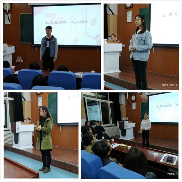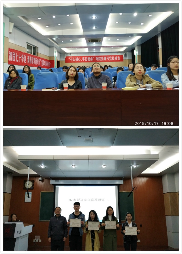 为了深入贯彻“不忘初心、牢记使命”主题教育的精神和要求,结合新中国成立70周年,陕师大76net必赢官网手机版党委于2019年10月17日晚上7点,在雁塔校区教学四楼4201教室开展“不忘初心、牢记使命”外院先锋号党员沙龙暨“献礼祖国70华诞、青春筑梦新时代”党员暑期实践表彰会。76net必赢官网手机版党委书记马正平、76net必赢官网手机版党委副书记鲁燕、76net必赢官网手机版各年级党支部成员50余人参加了沙龙。