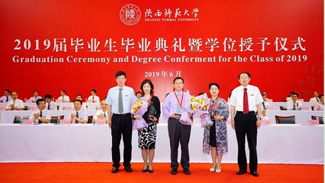6月27日上午,2019届学生毕业典礼上,进行了76net必赢官网手机版第六届杰出校友颁奖,校党委书记程光旭、校长游旭群为校第六届杰出校友颁发了证书、奖品。第六届杰出校友当选者、新疆乌鲁木齐八一中学校长、党委副书记、外语系1988届毕业生程彩铃,同其他2位杰出校友(清华大学附属中学校长、原数学系1977级王殿军校友,西安交通大学附属中学校长、原化学系1980级王佩东校友)一起接受了颁奖。