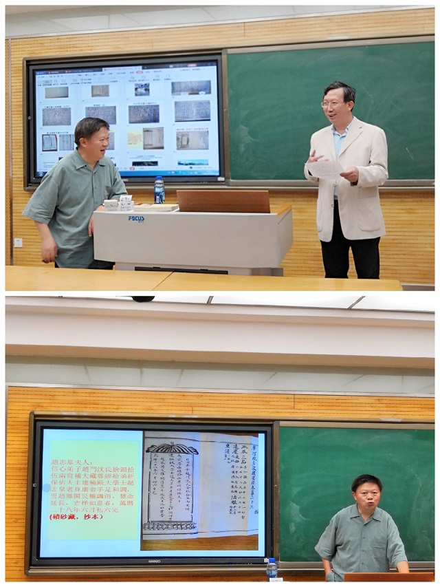 龙达瑞教授首先介绍了他目前正在从事《永乐北臧勘检目录》和《永乐北臧联合目录》工作,明清两代的大藏经的研究。他曾于2009年在洋县参加长安佛教研讨会,将西夏文献提供给同专业大家进行研究。他指出,永乐北藏共有5000余册印本,他坚信不同的印本都有各自的价值,为求得不同版本,他不辞辛苦前往许多地方拜访各个印本的藏馆,获得了大量的研究经验。接下来,他向大家介绍了大藏经发展的时间表、兰溪市博物馆和甘肃武威博物馆的藏本、洋县和北京广济寺的印章、《积沙藏》的抄本和阅读大藏经的方法和要点。