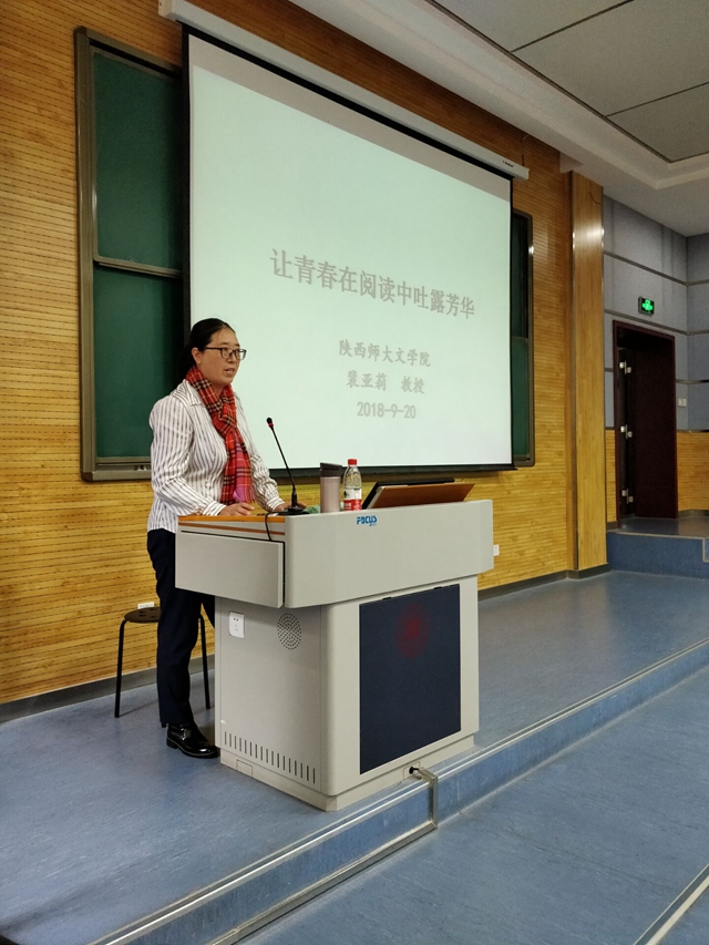 为加强中华优秀传统文化教育,开拓学生知识视野,提升人文素养,养成良好的读书习惯,9月20日下午2点半,76net必赢官网手机版邀请了文学院博士生导师裴亚莉教授做客“会通讲堂”,在5204教室给学生做了主题为“让青春在阅读中吐露芳华”的报告。报告由鲁燕副院长主持。