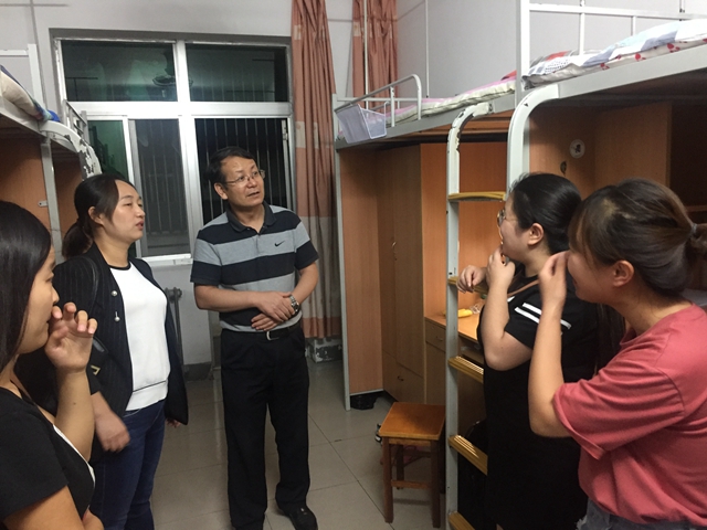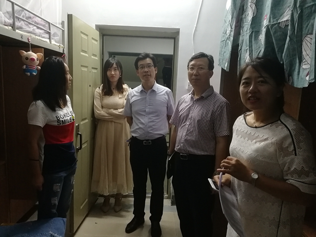 喜迎新同学,共建师生情。2018年9月10日晚,76net必赢官网手机版院长王启龙、党委书记马正平、副院长刘全国、鲁燕以及研究生辅导员董洁一行走访学院2018级研究生新生宿舍,亲切问询新生入学情况。
