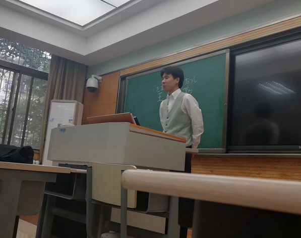 王红老师首先介绍了我校日语系的师资力量,浓厚的学术氛围以及丰富多彩的文化活动和课外生活。她强调,日语的学习是快乐与挑战并存的,需要各位同学抛弃安逸玩乐的思想,刻苦学习,刻苦钻研。接下来,张桦老师则更进一步地介绍了日语学习的秘诀,她指出:要牢牢抓住日语语法这一最为关键之处,同时也要扎实学好听力、会话等课程。她还用“语法是米饭,其他课程是菜,不吃菜会觉得索然无味,而不吃饭会饿”这一形象比喻来解释日语语法与其他学科的关系,使学生更加深刻地了解到语法的重要性。接着2017级新生的任课教师史曼和乐燕子都相继表示会在接下来的学习生活中兢兢业业,与同学亦师亦友,在日语的殿堂中互相帮助,共同成长。最后,来自日本的听力老师玉冈敦迈着谦逊的步伐登上了讲台,虽然说的是日文,但同学们还是从玉冈老师温文尔雅的语调中感受到了他对新生的期待和祝福。