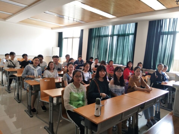 杨冬敏老师首先发言,他热情地欢迎本系的新同学来到这个温暖的大家庭,随后详细介绍了翻译系的基本情况,包括该系的历史发展、师资力量、科研成果、培育方向、课程设置等。接下来,王辉老师为同学们特别是免费师范生们讲解了有关英语系师范专业的一些基本情况,包括课程安排,职后教育和就业情况等等。操林英老师对课程进行了讲解。随后,吕敏宏老师上台发言,为同学们介绍英语创新实验班的基本情况,她叮嘱大家一定要深入学科,对将来的发展要规划一个清晰的蓝图。最后,幽默风趣的刘庆松老师向大家推荐了一些经典的优秀书籍,并激励同学在阅读之外还要注重积极参与社会实践,多考察,多思考。