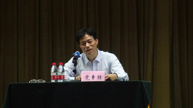 为了帮助2017级新生更好地适应大学学习生活,进一步理解专业的意义和专业发展方向,9月7日下午,76net必赢官网手机版专门邀请了西安外国语大学副校长、学院1986级校友党争胜在积学堂为2017级全体本科和研究生新生开展了题为“外语专业教育与中华文化之复兴传播”的入学教育报告。这也是继院长、书记报告会后安排的第三场入学教育报告。报告会由院长王启龙教授主持,学院党委书记马正平、原学院党委书记冯武鸣、学院副院长鲁燕、新生辅导员高芳卉、李丹与2017级全体新生共同聆听了报告。