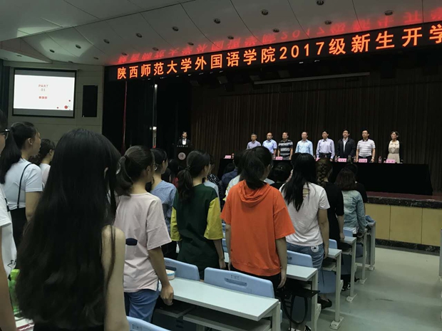 秋风送爽,丹桂飘香。9月7日下午,76net必赢官网手机版在雁塔校区积学堂隆重举行2017级新生开学典礼。西安外国语大学副校长、76net必赢官网手机版1986级校友党争胜,76net必赢官网手机版院长王启龙,党委书记马正平,原党委书记冯武鸣,党委副书记马兰,副院长贺俊杰、孙坚、刘全国、鲁燕,教授代表白靖宇、郑元会,英语系主任吕敏宏,日语系主任王红,本科公共外语教学与研究部主任马珂,翻译系副主任杨冬敏、操林英,学院分团委书记、研究生辅导员高芳卉及本科各年级辅导员参加了开学典礼。典礼由学院副院长鲁燕主持。