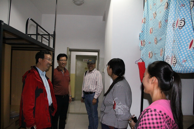 9月1日晚7点,学院院长王启龙、书记马正平、副院长孙坚、贺俊杰、刘全国、鲁燕以及辅导员高芳卉前往宿舍看望新生,并对新生进行亲切地问候,鼓励学生积极适应新生活,努力学习,在新的起点上,收获快乐,收获成长,遇见更好的自己。