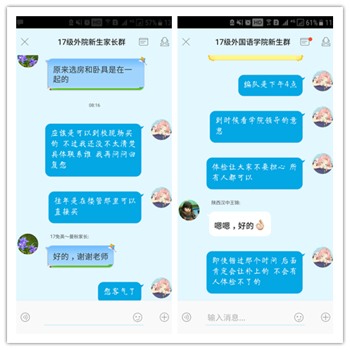 在学校招办和网络中心的大力支持下,学院2017级新生辅导员李丹根据新生录取的基本信息,建立了2017级新生及家长的QQ群、微信群平台,开展答疑和交流,尤其对于学生关心的课程学分、交流交换和奖助学金等情况进行政策宣讲。