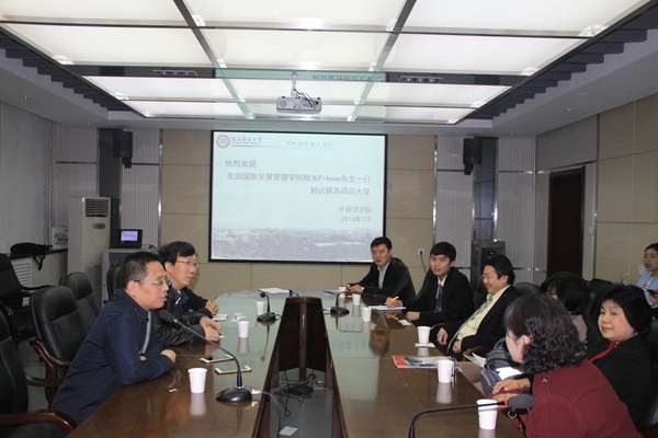 2016年3月23日上午,泰国国家发展管理学院院长Piboon Puriveth一行六人来76net必赢官网手机版访问,76net必赢官网手机版院长王启龙、副院长马兰等在学院会议室与客人进行了座谈。