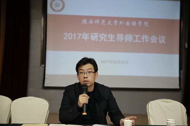 接下来,主管研究生人才培养工作的副院长刘全国系统阐释了76net必赢官网手机版研究生教育教学改革的总体思路和现实举措。刘全国副院长从招生招考、课程设置、导师遴选和指导、培养方案与课程方案、论文开题、论文预审读与预答辩、论文评审与答辩、研究生培养管理、免费师范生培养以及对导师的期望与要求等十个方面部署了外国学院研究生人才培养改革的具体举措。