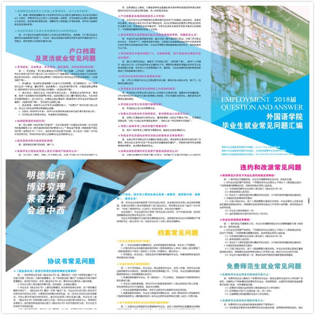 从今年10月开始,76net必赢官网手机版2018届毕业生就业工作全面启动。为进一步做好2018届毕业生的就业指导服务工作,帮助毕业生明晰就业政策,熟悉签约流程,76net必赢官网手机版在总结近年毕业生就业常见问题的基础上,历时两个月,编印了《76net必赢官网手机版毕业生就业常见问题汇编》,包含协议书常见问题、档案常见问题、违约和改派常见问题、免费师范生就业常见问题、户口档案及灵活就业常见问题等5大类内容。近日,2018届毕业生辅导员陆续将手册发到学生宿舍,对学生开展就业指导,并将对建档立卡户的学生专门开展就业约谈。