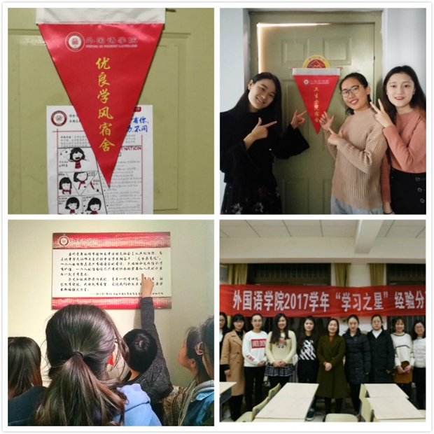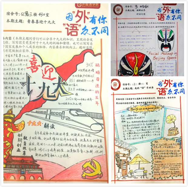 结合学风建设,76net必赢官网手机版以学生专业学习、思想交流、知识拓展、心理健康为主要内容,面向全体学生定期开展“因‘外’有你,‘语’众不同”主题门贴设计评比活动,促进学生的自我学习和沟通分享。自今年3月起,“期末总动员”、“专四备考集锦”、“定位自我,成就未来”、“沐浴春光,悦纳自我”、“毕业季,我们整装待发”、“喜迎十九大”、“全心全力,备战大学第一考”、“战胜拖延症,我们在行动”、“新时代,逢其时,有作为——学习贯彻十九大精神”、“坚定目标,勇往职前,成就青春梦想”等16期主题分享得到了同学们的积极响应。每个宿舍都参与其中,精心设计分享内容,共计1200余张。学生们通过对主题的理解、设计、分享、交流和评优,不仅强化了专业知识,同时形成了思想交流的良好氛围。