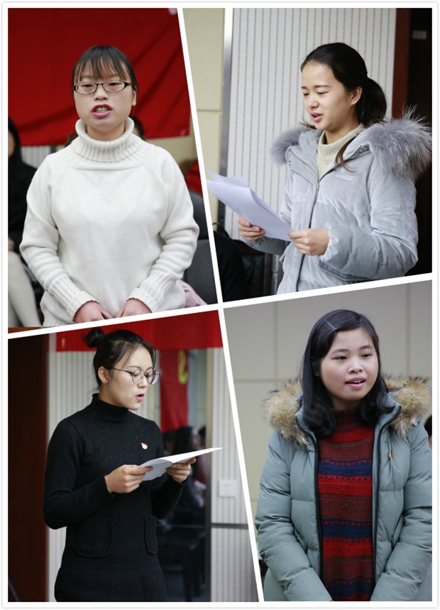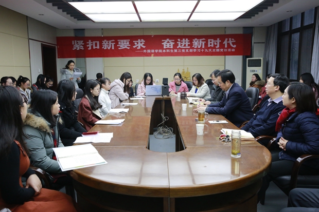 随后,党怀兴校长讲话。他肯定了76net必赢官网手机版本科生第三党支部本次十九大主题党日活动的效果,并与同学们分享了他的感受与希望。党校长谈到,学生党员首先要树立四个自信,在新时代的背景下学懂弄通十九大精神的内涵,通过自身的学习和理解,让更多的同学了解和认识国家发展的战略和方向。党校长提醒大家,作为外语专业的学生,不仅要警惕西方反华势力的渗透,更要树立中国自信,做好中华文化的传播。第二,要将个人发展同国家民族的发展相结合。师范生要勇于承担时代责任,培养好社会主义未来的栋梁,做卓越教师,以“四有”好老师的标准要求自己。第三,广大同学们要深入学习和践行社会主义核心价值观,传承中华传统文化,既学好外语,又要多读经典寻找专业依托。最后党校长以习近平总书记的新年贺词勉励大家,幸福是奋斗出来的,同学们要撸起袖子加油干,一定能够拥有美好的未来。