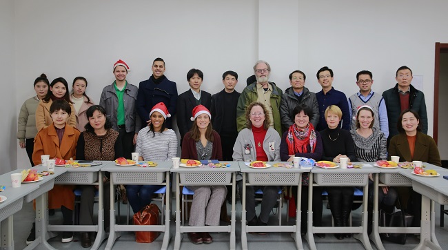期间各位学院老师和外籍专家互赠节日礼物,共叙良好祝愿。