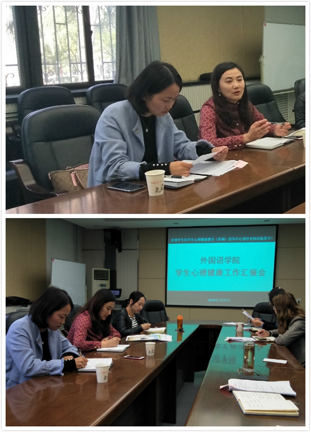3月27日下午,我校学生处副处长蒋毓新和学生心理健康教育(咨询)指导中心周全丽老师莅临76net必赢官网手机版检查指导学生心理健康工作的开展情况。学院副院长鲁燕、全体辅导员参加了座谈。