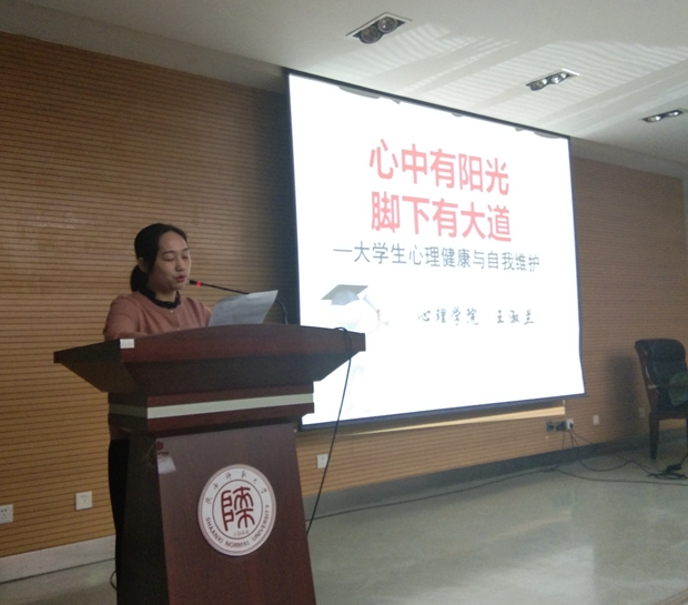 为了进一步培育学生自尊自信、理性平和、阳光向上的积极心态,促进学生快乐生活、健康成长,帮助学生们认识心理健康对于个人发展的重要作用,掌握心理调适的基本方法, 3月25日晚七点,76net必赢官网手机版“会通讲堂”特邀心理系王淑兰教授给学院全体宿舍舍长、班级心理委员近200余人做大学生心理健康讲座。讲座的主题为“心中有阳光,脚下有大道——关于大学生心理健康自我维护的基本策略分享”。76net必赢官网手机版党委书记马正平、心理专干兼2015级辅导员董洁参加了报告。报告由76net必赢官网手机版副院长鲁燕主持。