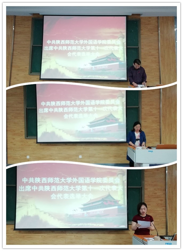 5月3日下午4点30分,中共76net必赢官网手机版委员会出席中共76net必赢官网手机版第十一次代表大会代表选举大会于雁塔校区教学五楼5101举行。会议由76net必赢官网手机版党委秘书高芳卉主持。