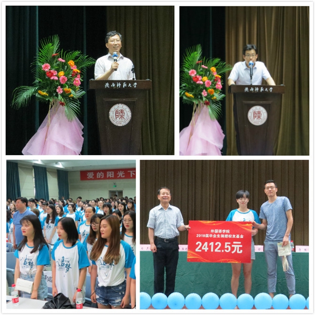 教师代表、俄语系副主任陶源老师在发言中幽默风趣,妙语连珠,不仅向同学们表达了衷心祝贺,与大家一起回忆了四年的校园生活,同时给大家送上了诚挚的祝福。校友代表、就职于汉中市实验中学的李一诺老师在发言中鼓励学弟学妹们坚持自己的选择与梦想,并且分享了自己迈入工作岗位之后的困难与挑战,建议毕业生们勇于追梦,敢于选择。