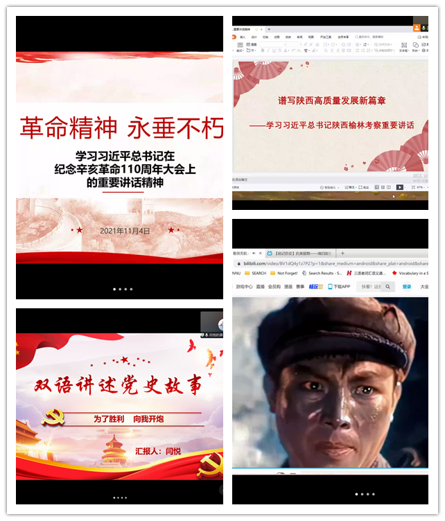 2021年11月4日,76net必赢官网手机版研究生第二党支部于腾讯会议线上召开双语讲述党史故事主题党日活动,出席活动的有吕敏宏院长及研究生第二党支部全体成员。会议由支部书记邵小玲主持。