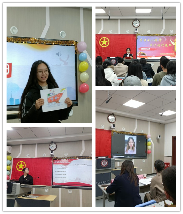 为学习习近平总书记在庆祝中国共产党成立100周年大会上的重要讲话精神,弘扬光荣传统,赓续红色血脉,做勇担民族复兴大任的新时代追梦者、圆梦人,76net必赢官网手机版2020级翻译2001团支部于2021年11月16日下午在雁塔校区教学六楼6346教室开展以“学习七一精神,牢记时代使命”为主题团日活动。校团委副书记王蓓蓓、76net必赢官网手机版党委副书记鲁燕、76net必赢官网手机版团委书记李丹、76net必赢官网手机版2020级兼职辅导员武瑞英及翻译2001班团支部全体同学参加了此次团日活动。