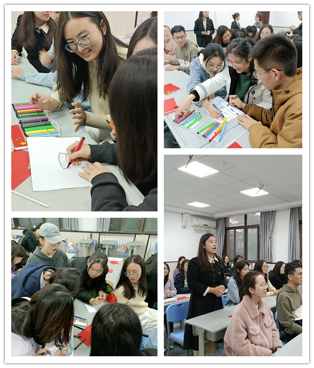 随后,在主讲人齐思雨的领学下,团支部全体成员共同学习了习近平总书记“七一”重要讲话精神内容,同时结合专业特色,开展了党史学习的英文知识竞答。在实践活动“共绘蓝图”部分,团员们现场围绕抽取的主题——“改革开放”进行创作,完成后以小组为单位进行了作品展示。根据现场投票结果,最终第四团小组的作品《改革开放的巨轮》被选为最佳作品。最后,来自2021届翻译班,现就读于北京外国语大学的王如兰学姐通过一段视频与同学们一起分享了自己在大学期间向党组织靠拢的心路历程和学习经验,鼓励同学们明确目标,奋进前行。