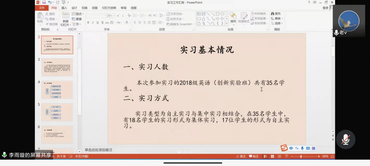 首先,孙坚副院长就本学期非师范实习情况进行简要说明,接着曹婷副院长兼日语系主任也是今年日语系带队老师、徐华老师、李雨璇老师以及强薇老师分别就实习带队小组做总结陈述,说明各专业的实习情况、取得的效果以及收获与心得,并与与会人员分享了带队实习期间的照片资料,展示与学生交流的各个场景。